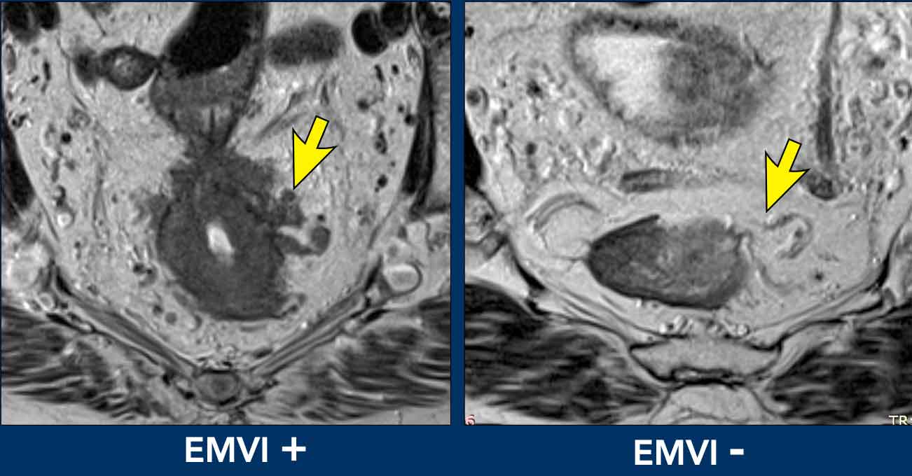 - No EMVI (extramural vascular/venous invasion), no mesorectal fascia (MRF) involvement.