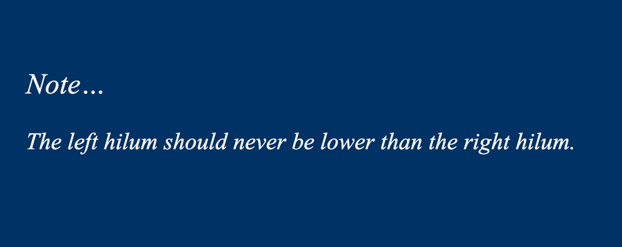 Understanding normal hilar anatomy on the lateral view facilitates detection of abnormalities.